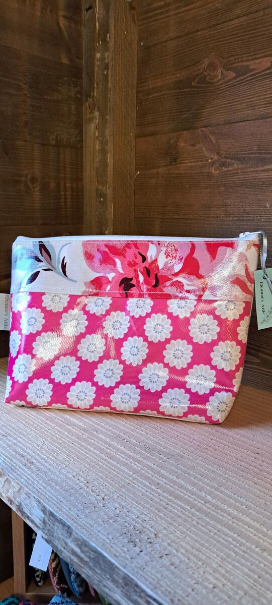 Pink floral matt oilcloth washbag/Makeup bag listed in: