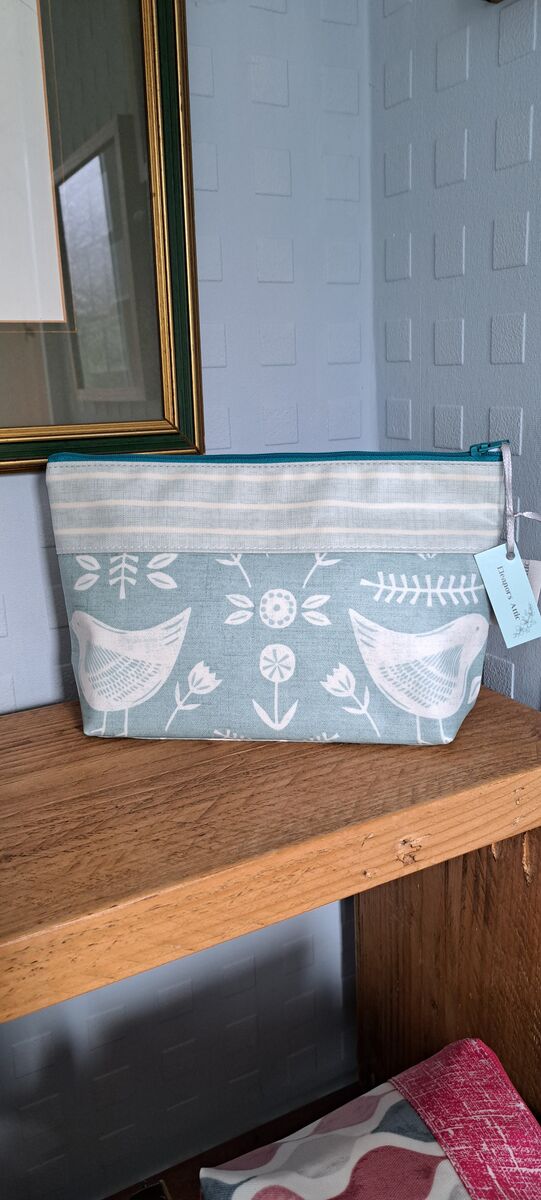 Scandi bird matt oilcloth washbag/Makeup bag listed in: