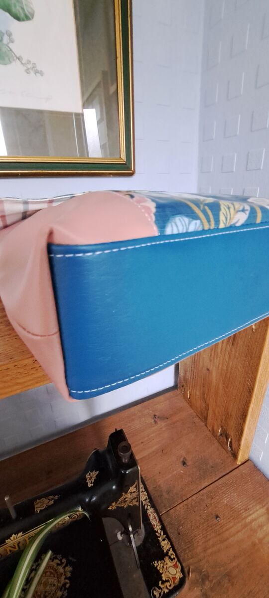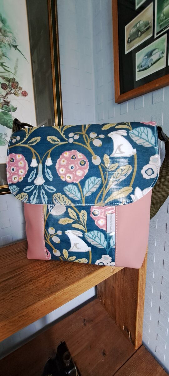 Teal and pink floral matt oilcloth/ faux leather Postman Bag listed in: