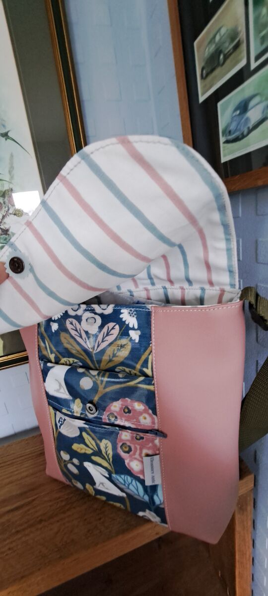 Our original design, the Postman is a fantastic choice for a larger bag. Made from oilcloth, the Postman is a large sized cross-body bag with an interior pocket, reinforced magnetic fastening and an adjustable strap. This newer style also features an exterior zipped double pocket. It's fully lined with a co-ordinating fabric and then finished with a subtle white top-stitch and our signature Eleanor's Attic swingtag.
