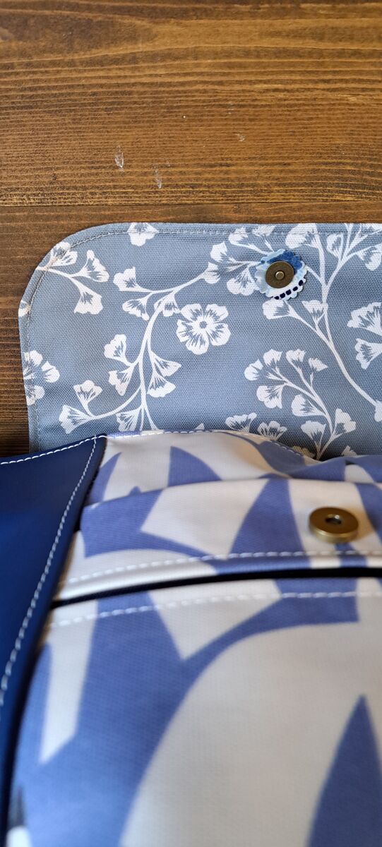Navy floral gloss oilcloth/faux leather Reporter Bag