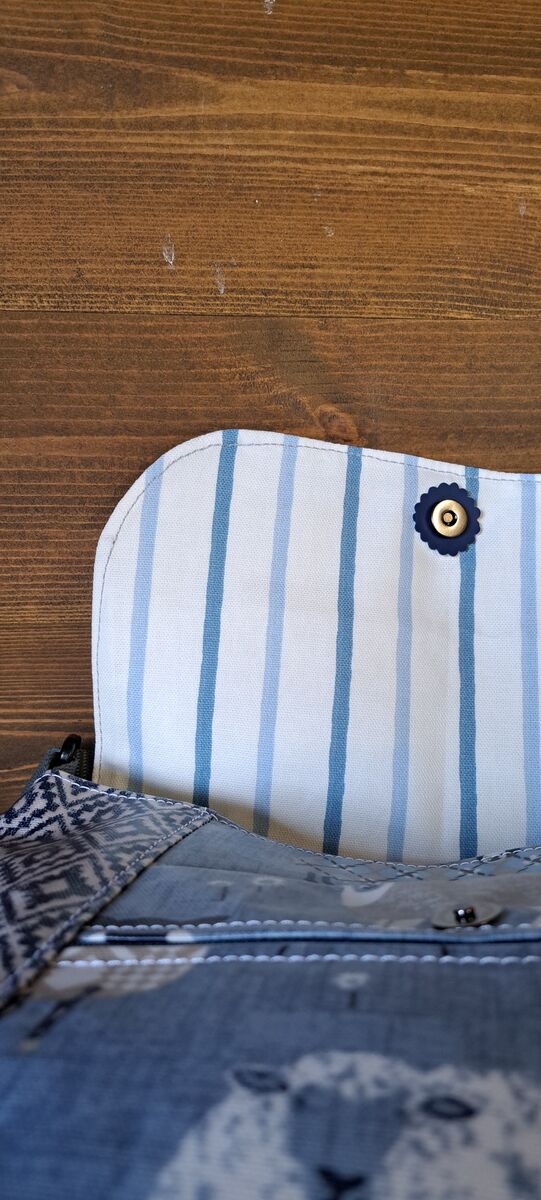 Our updated bestselling design, the Reporter is the perfect choice for an everyday handbag. Made from durable wipe clean oilcloth/vinyl , the Reporter is a medium sized cross-body bag with an interior pocket, reinforced magnetic fastening and an adjustable strap. It's fully lined with a co-ordinating fabric and then finished with a subtle white top-stitch and our signature Eleanor's Attic swing tag. This new design also features a zipped pocket on the front and vertical oilcloth stripes. All of our items are handmade in Wales.