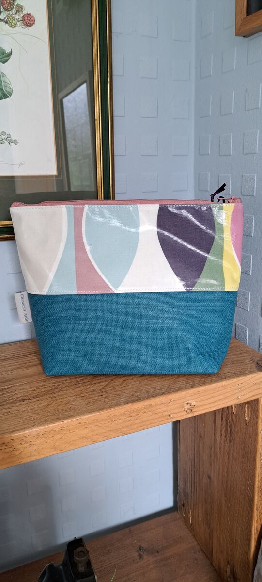 Teal abstract gloss oilcloth/faux leather washbag/Makeup bag listed in: