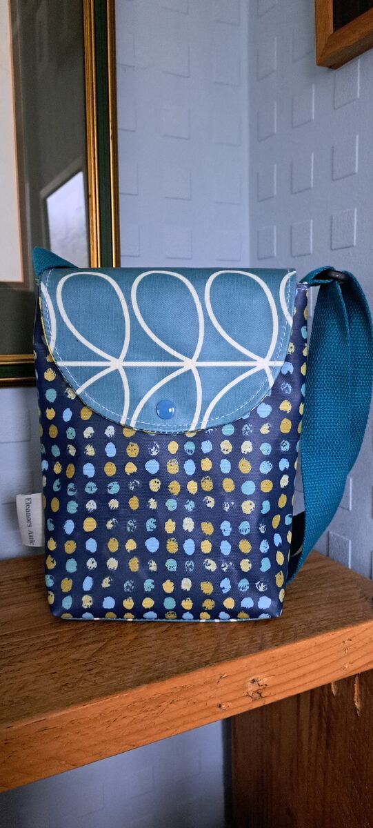 Tomato stem and navy matt oilcloth/ faux leather Postman Bag