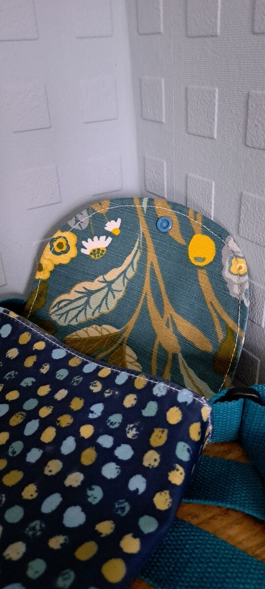 Teal and pink floral matt oilcloth/ faux leather Postman Bag