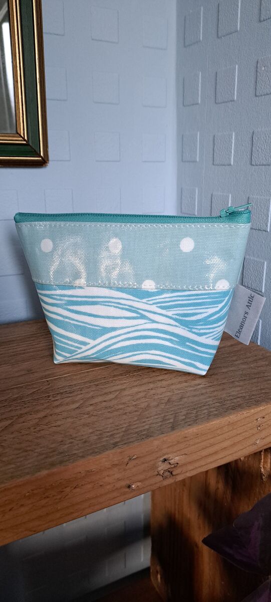 Teal abstract gloss oilcloth/faux leather washbag/Makeup bag