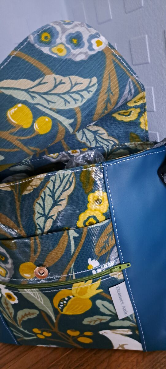 Our updated bestselling design, the Reporter is the perfect choice for an everyday handbag. Made from durable wipe clean oilcloth/vinyl , the Reporter is a medium sized cross-body bag with an interior pocket, reinforced magnetic fastening and an adjustable strap. It's fully lined with a co-ordinating fabric and then finished with a subtle white top-stitch and our signature Eleanor's Attic swing tag. This new design also features a zipped pocket on the front and vertical oilcloth stripes. All of our items are handmade in Wales.