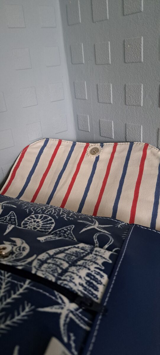 Our updated bestselling design, the Reporter is the perfect choice for an everyday handbag. Made from durable wipe clean oilcloth/vinyl , the Reporter is a medium sized cross-body bag with an interior pocket, reinforced magnetic fastening and an adjustable strap. It's fully lined with a co-ordinating fabric and then finished with a subtle white top-stitch and our signature Eleanor's Attic swing tag. This new design also features a zipped pocket on the front and vertical oilcloth stripes. All of our items are handmade in Wales.