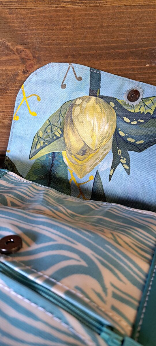 Green fliral gloss oilcloth/faux leather Reporter Bag
